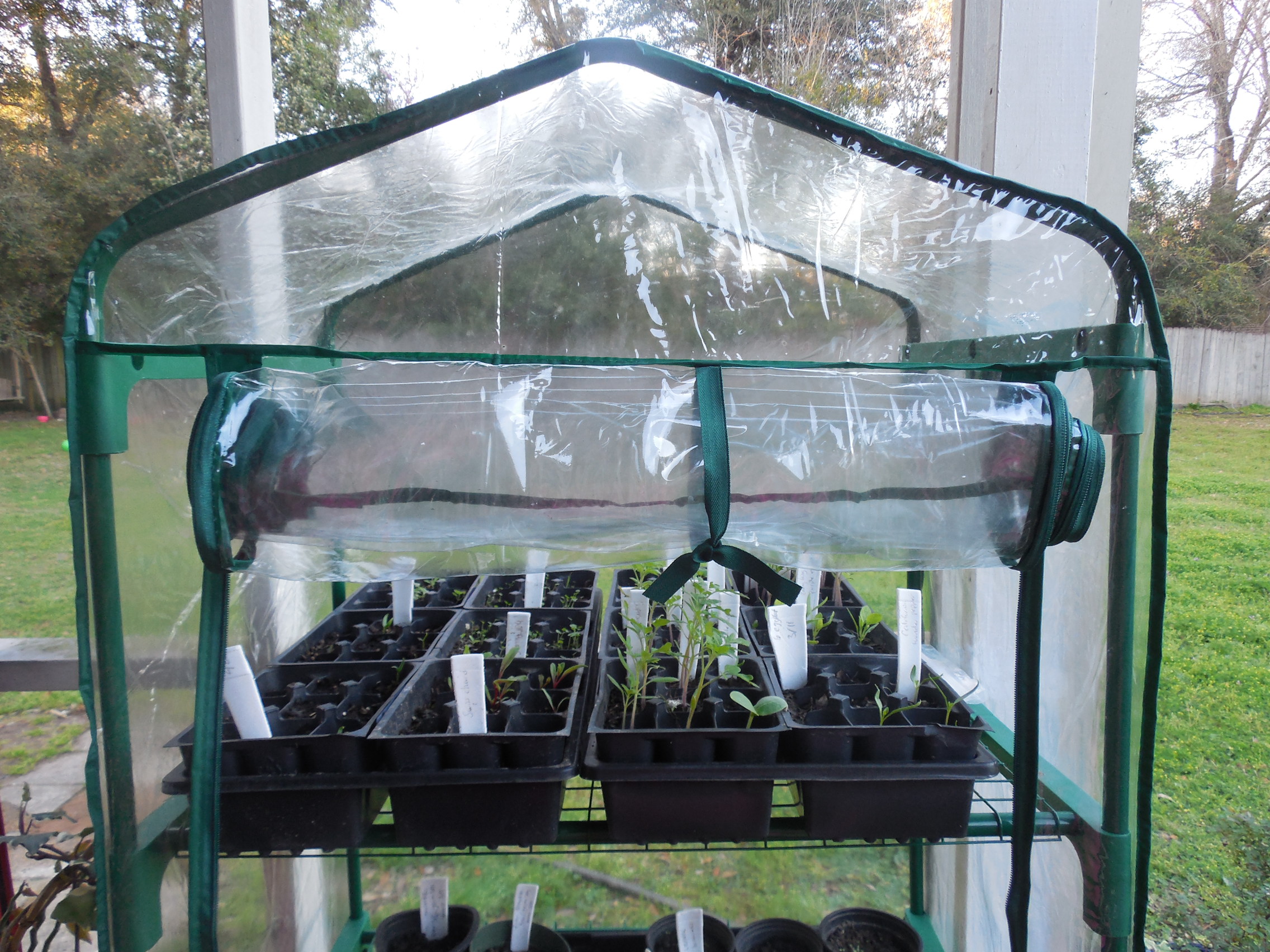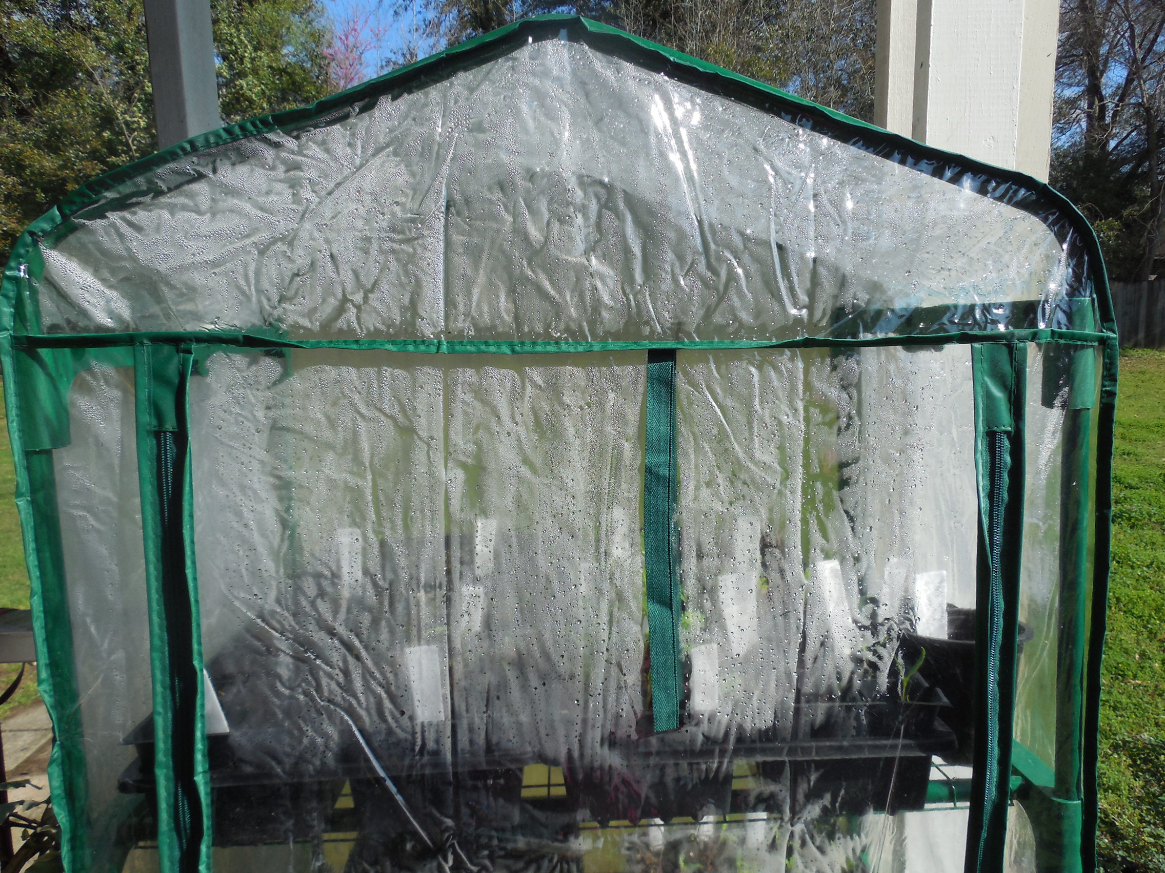 See all that condensation? I have loved having a little greenhouse this winter; I have started so many different vegetables and flowers. It has helped me keep them a little warmer than the outside air, and in Florida, a few degrees warmer is usually about all you need. Plant seedlings that you may purchase have likely been coddled too, so they also should be “hardened off” before planting.