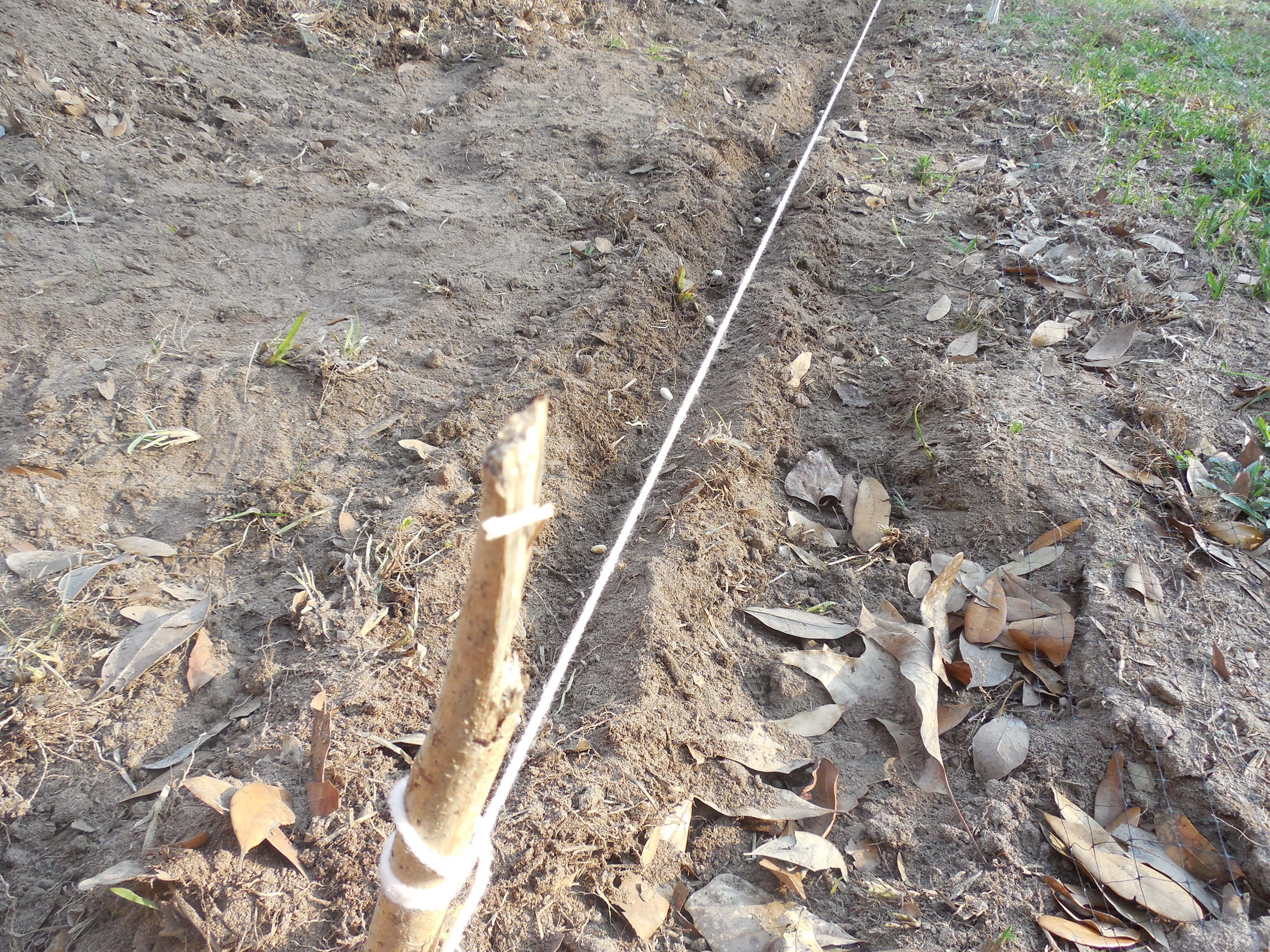 Since my garden expansion, my rows are much longer. I stretched yarn between two sticks and used that to help me make my rows straight. Now I pray for warm weather and soft rain showers. I still have some more varieties to plant, but I especially wanted to get the ‘Contender’ beans into the ground. They seemed to have a good germination rate, even when I planted them a bit early last year.