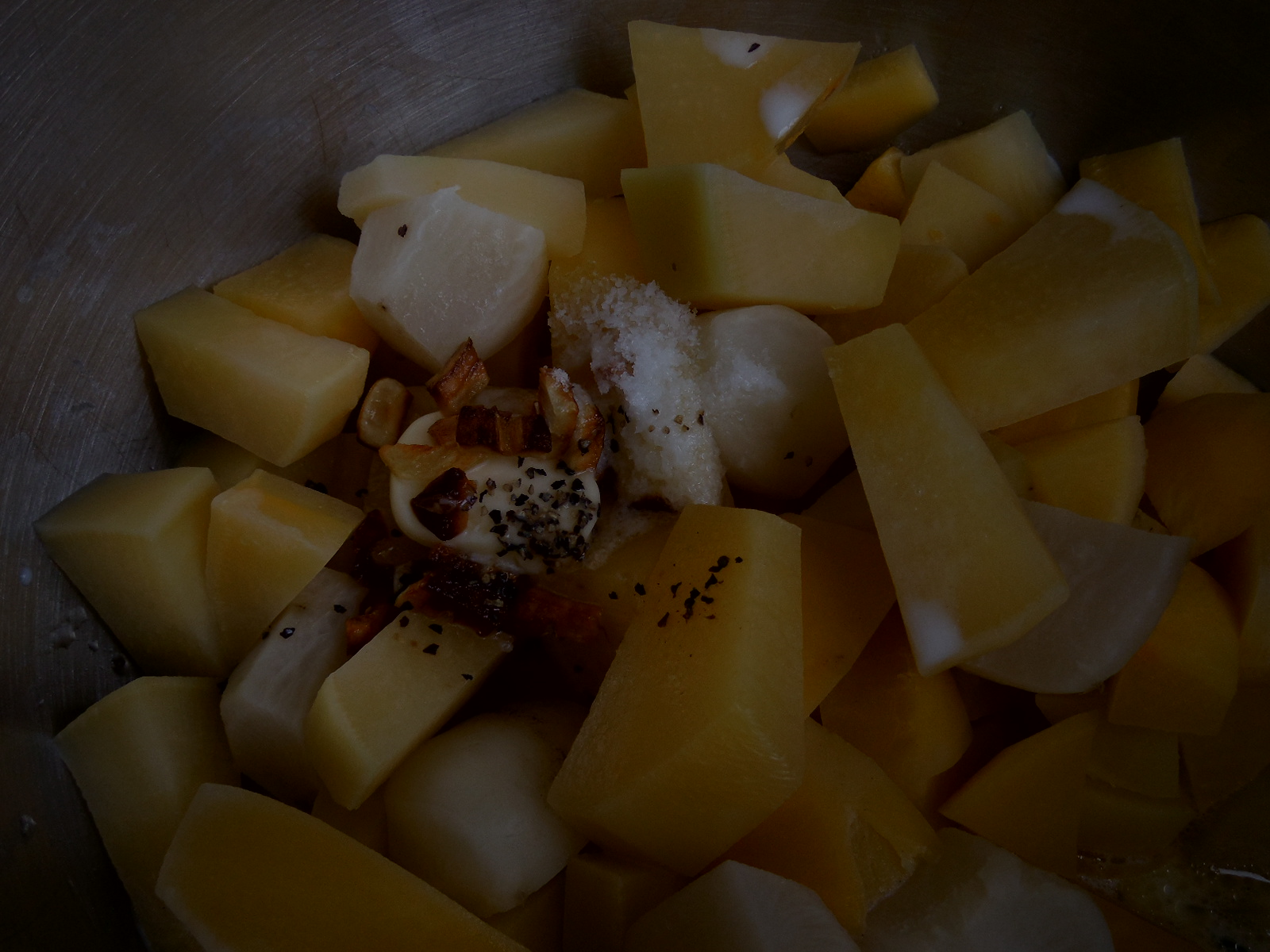 I like to boil the peeled rutabaga root and mash them like potatoes.