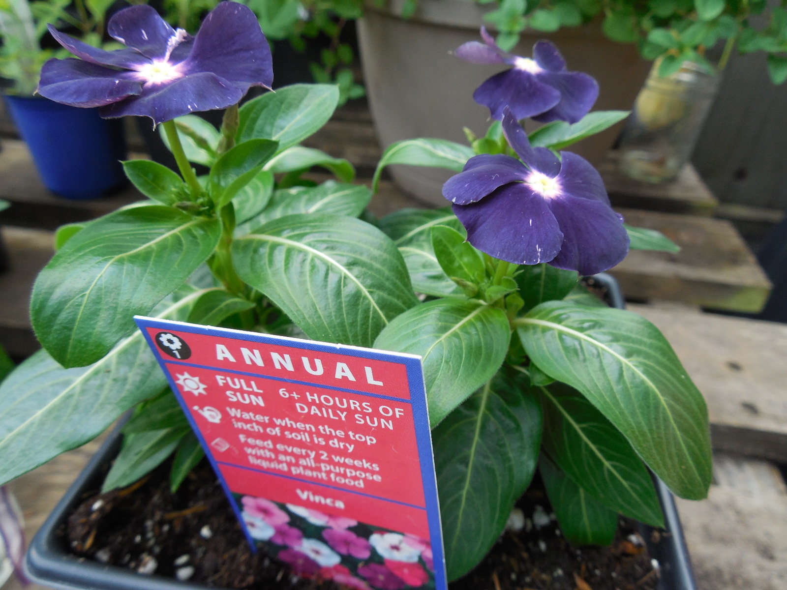 I plan to strictly stick to the list whenever I have one of my rare Walmart excursions, but they had blue vinca! What could I do? I wouldn’t have been able to stop thinking about them if I didn’t take one home with me.