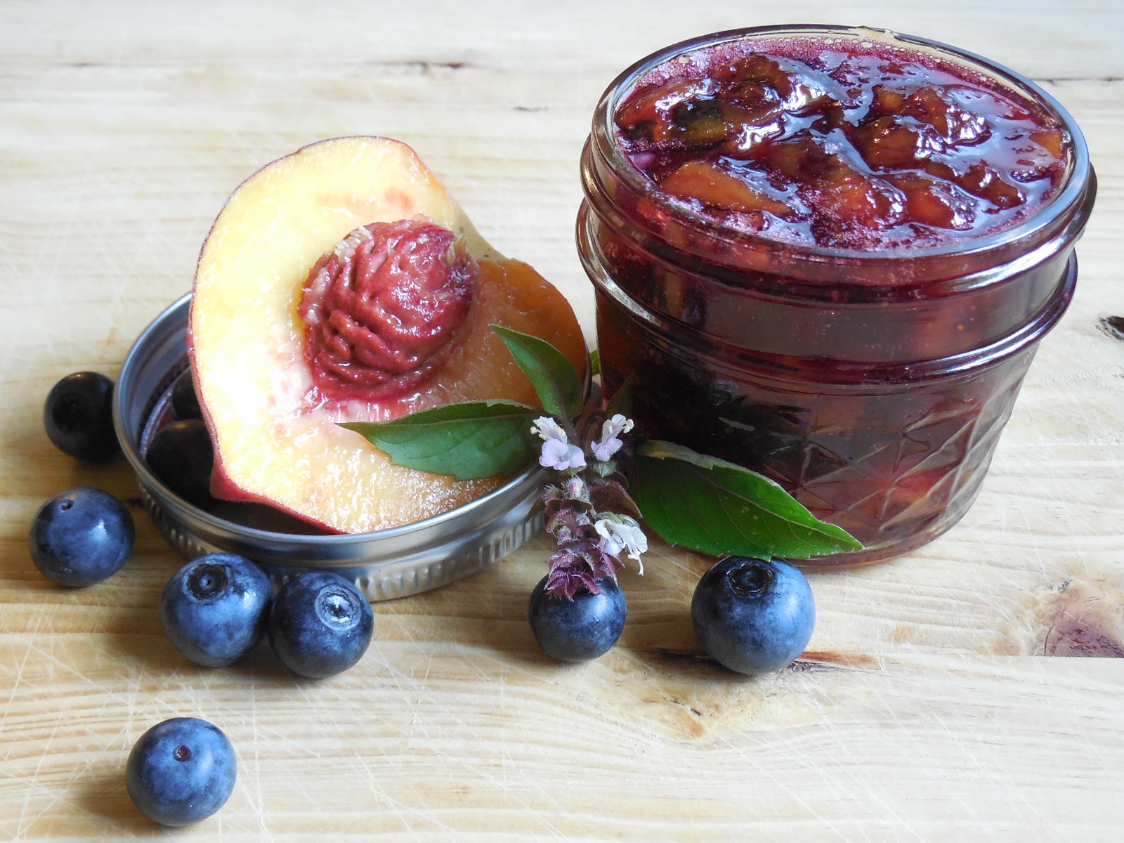 I have been jamming like a crazy woman. Making fresh jam is so simple and a fast way to capture the intense flavors of summer. Blueberries and peaches combine wonderfully-they are better together.