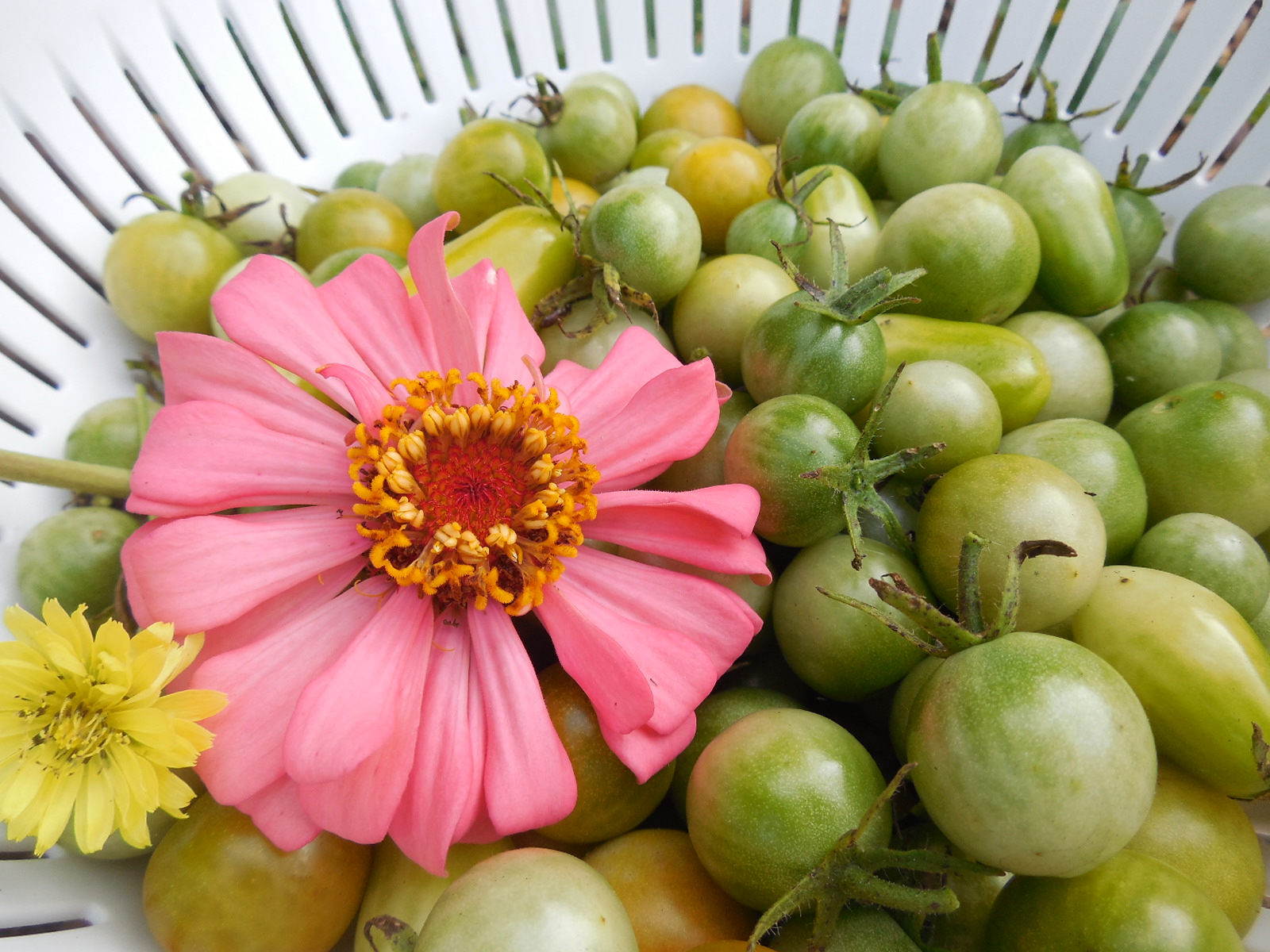 As I pulled up my tomato plants, I harvested some green tomatoes.