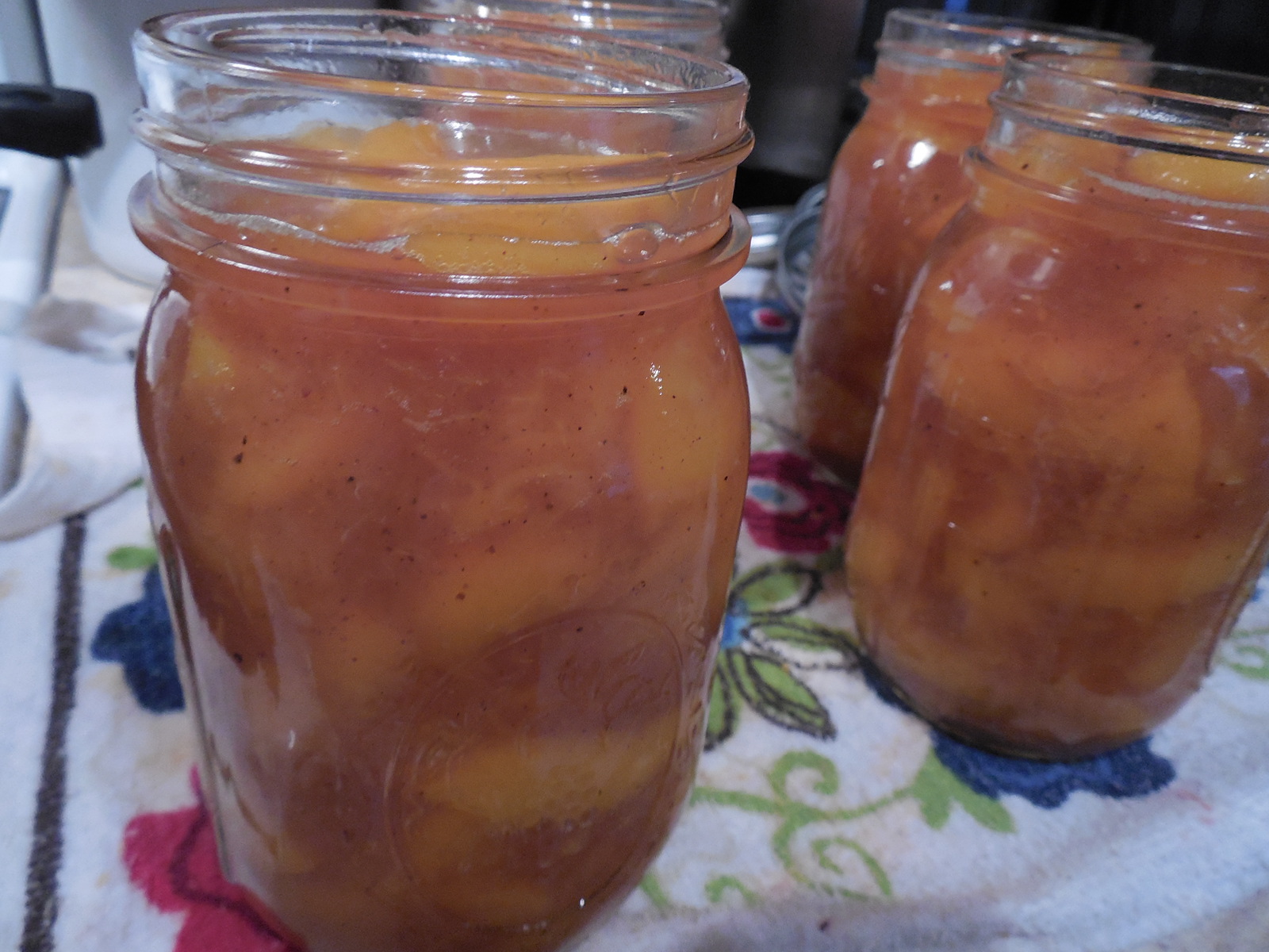 I have been steadily working my way through 75 pounds of peaches; the peach jam has been great, the blueberry peach jam has been great, but I have really been enjoying my spiced peach pie filling. Since really good peaches won’t be available in the blustery cold evenings of January, I made some pie filling out of them. Actually, I see many easy cobblers in my future. Yum!