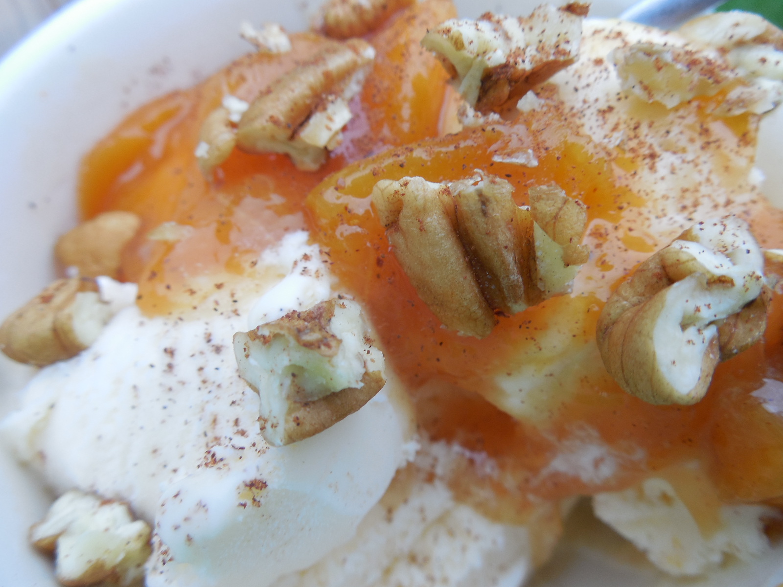 I poured some over vanilla ice cream and sprinkled pecans over it. Delicious! I did try making some peach syrup for sweetening iced tea, and it turned out really good! I’ll share that recipe/process in a later post, as well as how to can sliced peaches. If you hate peaches I’m sorry, but they have been my life recently.