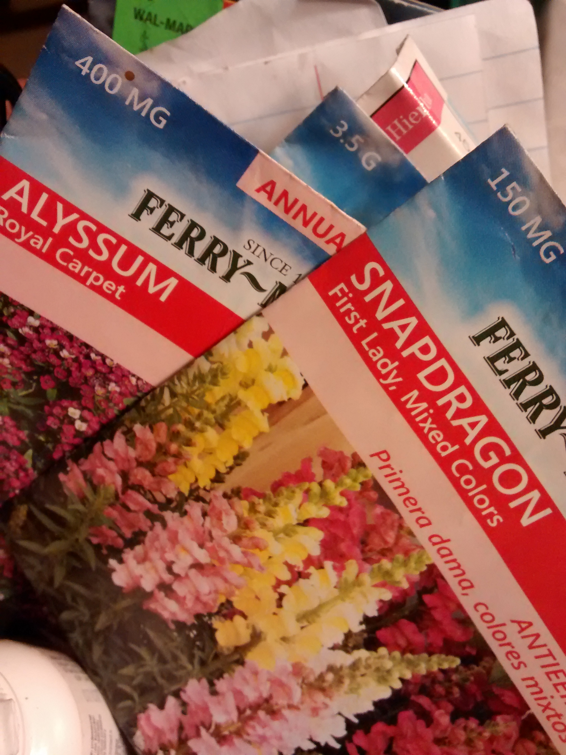 I was on a roll, so I planted some snapdragons, alyssum, pak choi, and cilantro. We’ll see how the flowers do; I would really like to save some moolah there.