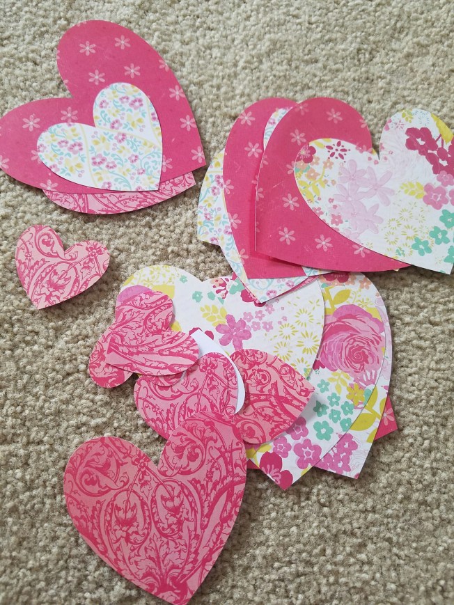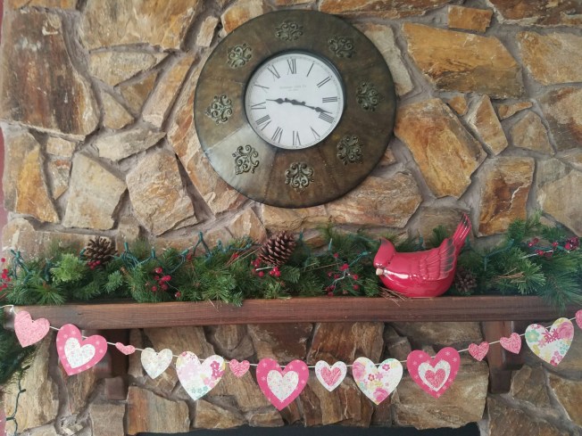 I recently cut out a ton of hearts and glued them to some string for a banner to go over our fireplace.