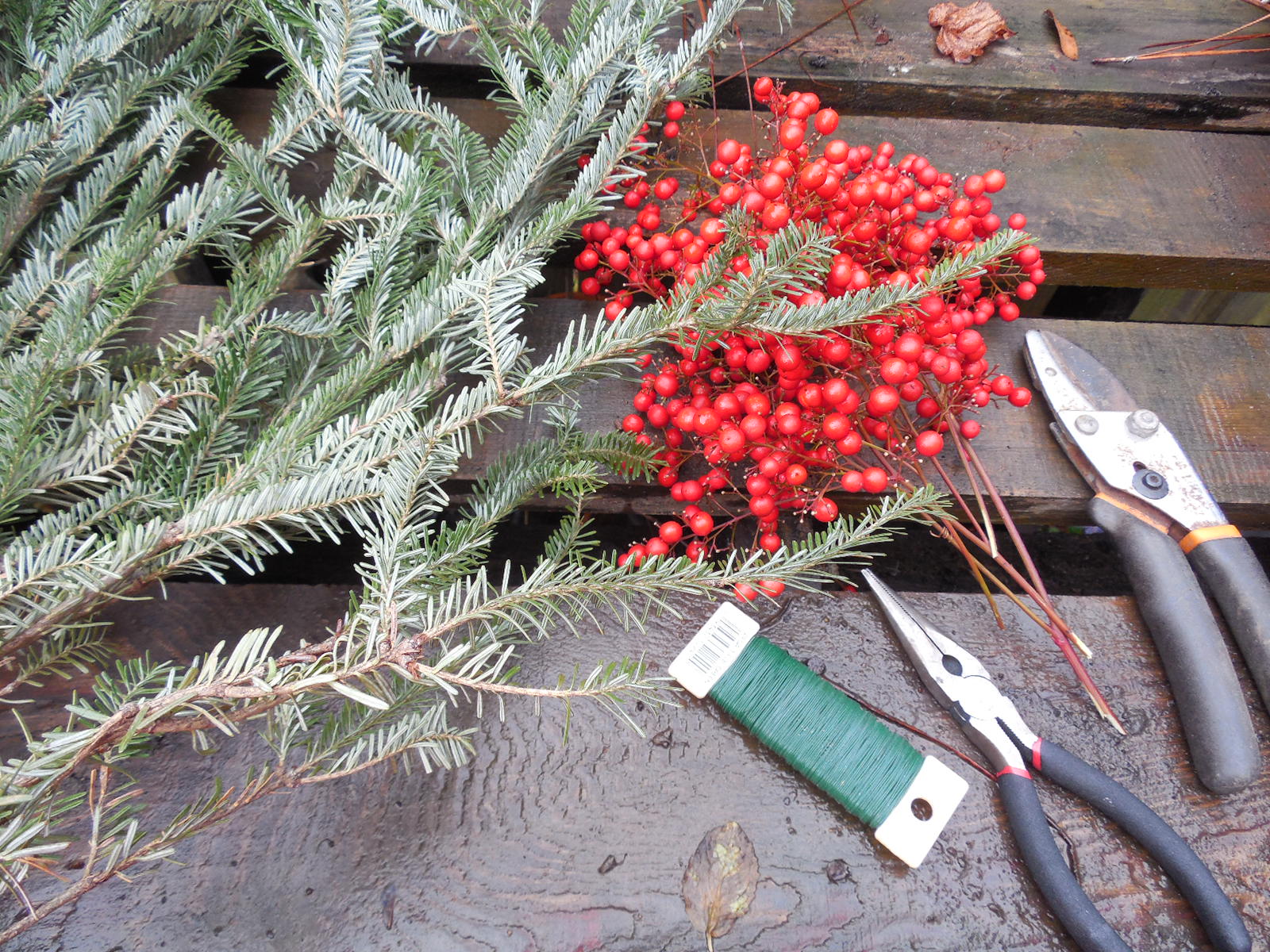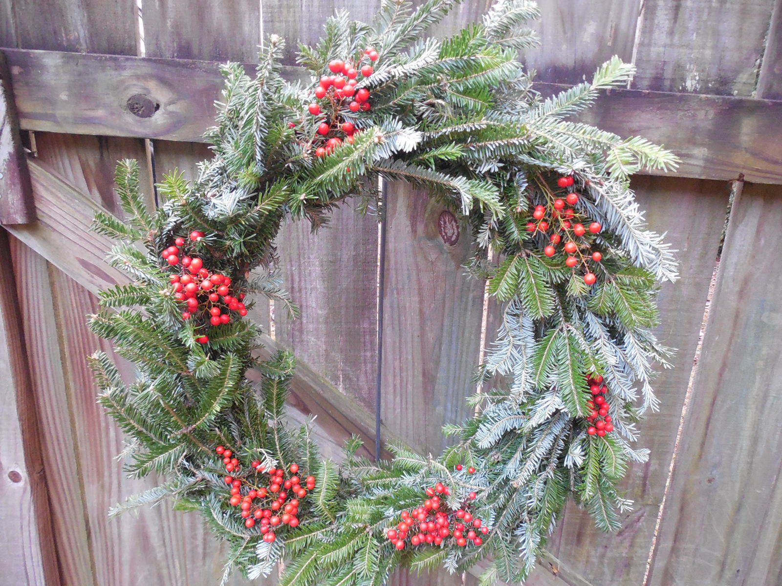 Decorations are optional, but fresh berries are classic and are easily tucked into the wreath like the clippings.