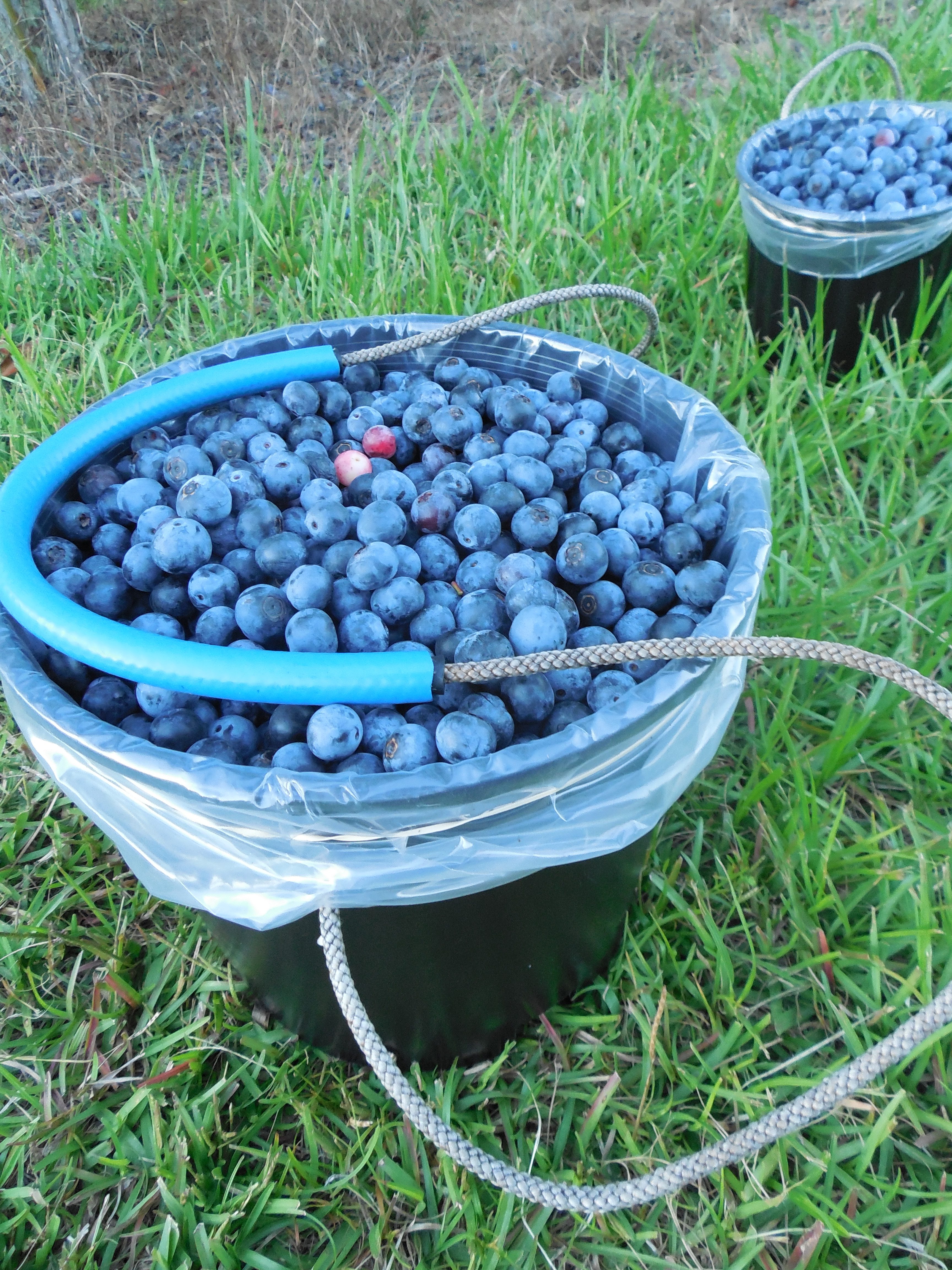 This picking arrangement was different than what I had used at Blue Basket Farms. It’s interesting seeing the different ways to hold blueberries while picking. 🙂