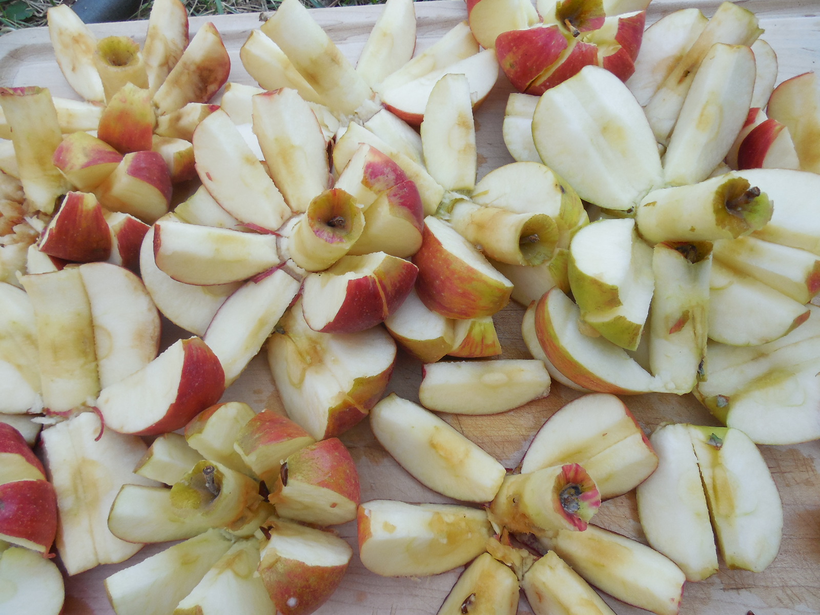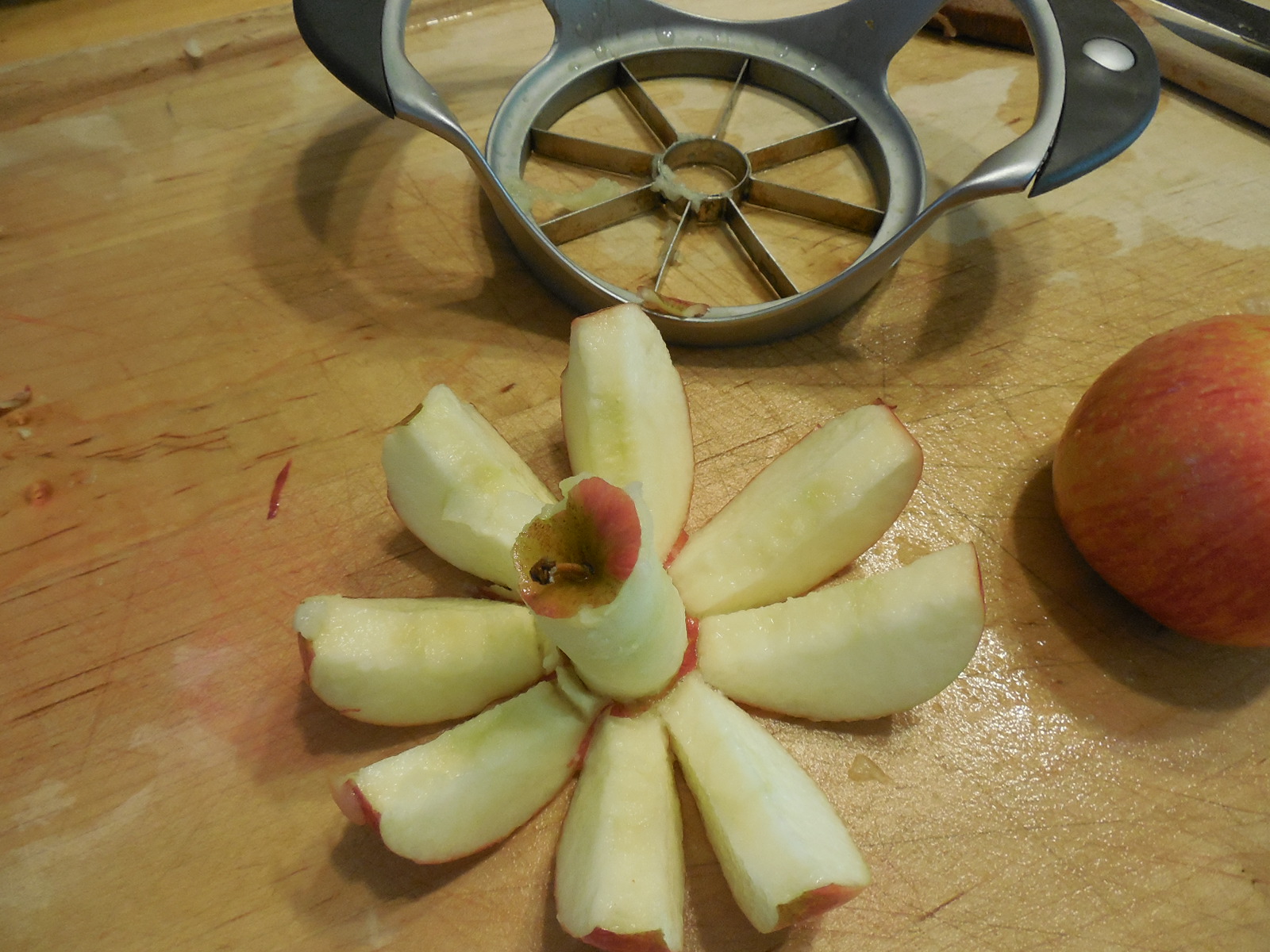 I just used this handy dandy apple corer/slicer. Remove the cores and save them for your favorite chickens.