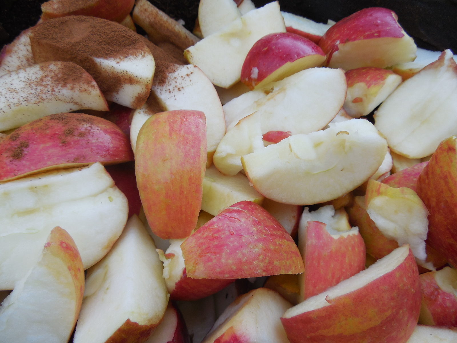 Here’s what makes this so easy (beside the Crock-pot)- no peeling! That’s right, with Jonathan apples you can skip the terribly tedious chore of peeling 36 apples.